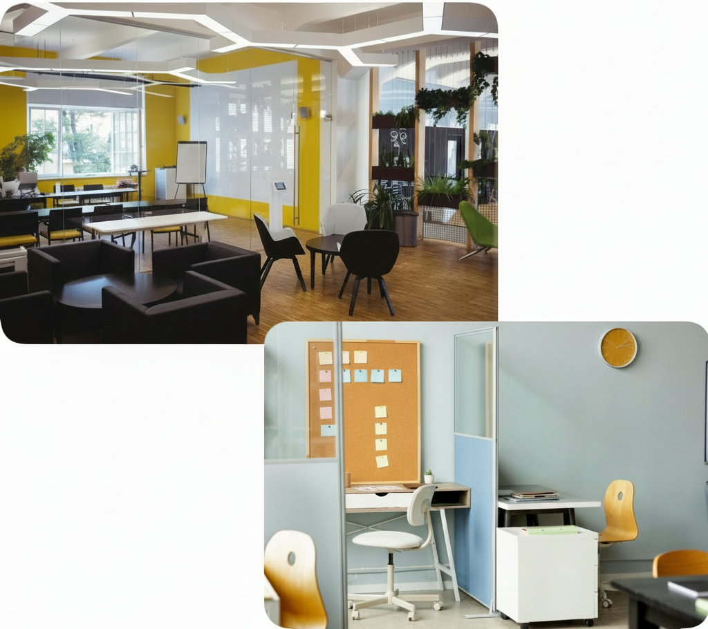 Создание отдельных рабочих зон, переговорных комнат, кабинетов руководителей